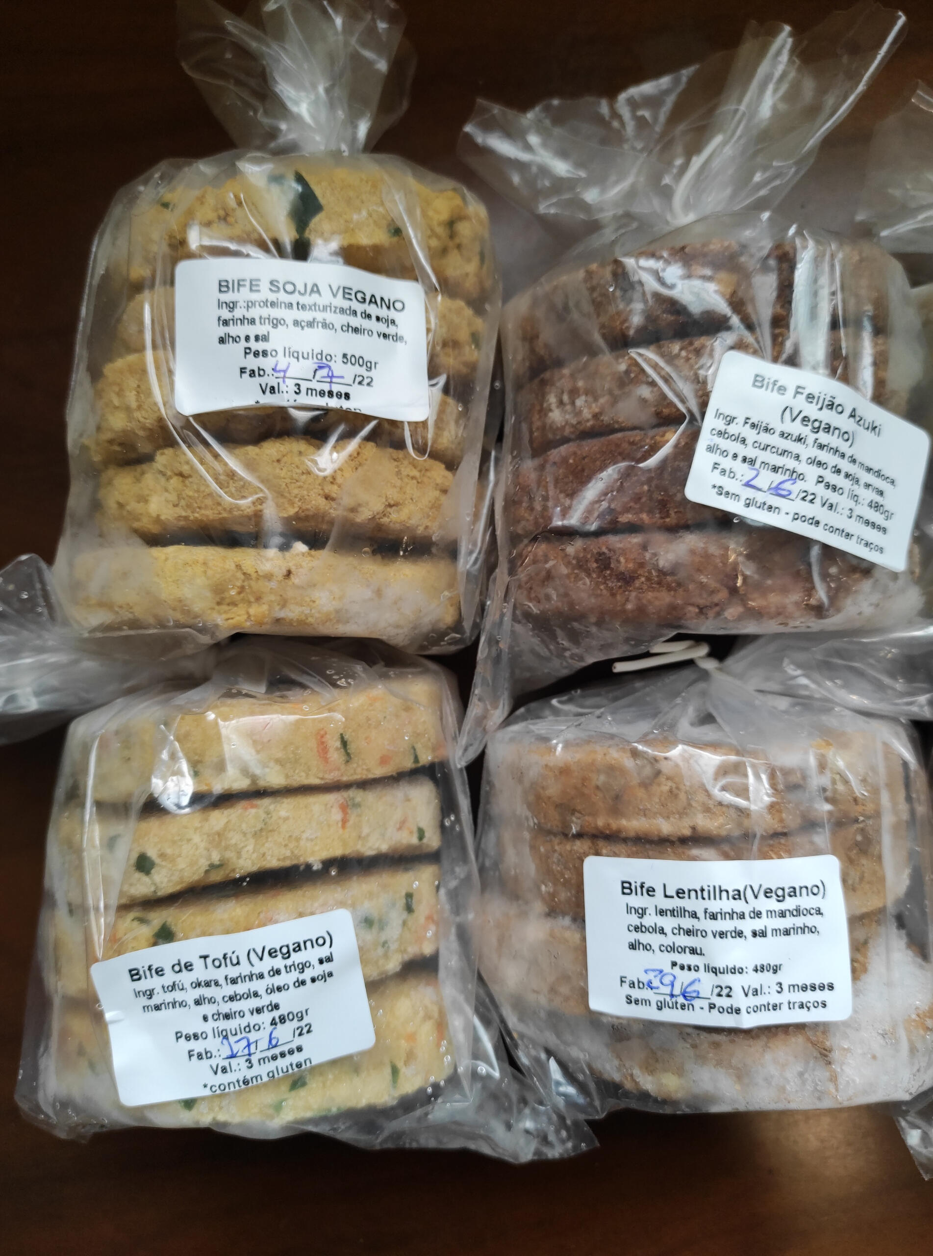 Diversas opções de congelados, artesanais, produzidos no Restaurante Nascente:- Bifes Veganos de: Grão de Bico, Feijão Azuki, Lentilha, Soja, Tempeh e Tofú